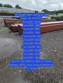 New 4x4x20ft Tubing 14g $75Dallas, TX