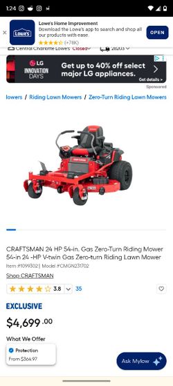Zero Turn Mower Bought In April Hardly Used 3 Year Transferable Warranty From Lowes$3,500Moore, SC
