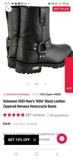Xelement 1502 Men's 'Killa' Black Leather Zippered Harness Motorcycle Boots