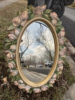 Vintage Home Interiors Oval Pink Rose Mirror 27”x19”$70Crofton, MD
