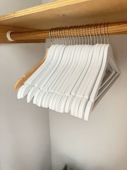 20 THICK WHITE WOODEN HANGERS WITH RUBBER BAR FOR PANTS (AND 1 WOOD COLOR HANGER)$20Queens, NY
