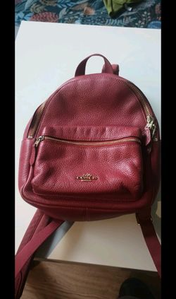 Coach Red Pebbled Leather Logo Zip Backpack with Inner & Outer Pockets$125Portland, OR
