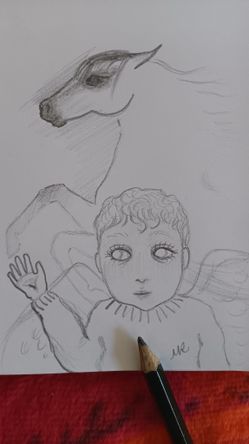 BABY ANGEL AND HORSE SKETCH, ORIGINAL ART HAND DRAWN ON PAPER UNFRAMED MINIATURE $8Orlando, FL