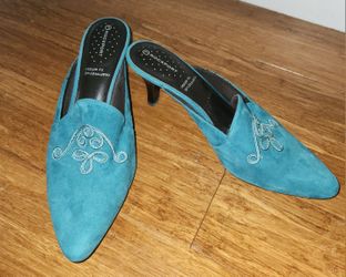 Women's Size 8 Teal Leather Slip On Heels$25Hollywood, FL