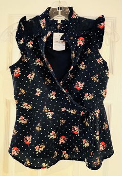 Monteau Navy Blue Floral Rose Dot Lace Bow Ruffle Sheer Peplum Shirt Girl Sz. L$12Garden Grove, CA