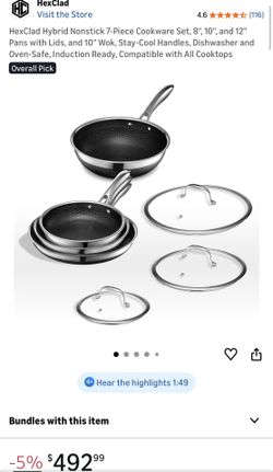 HexClad Hybrid Nonstick 7-Piece Cookware Set, 8", 10", and 12" Pans with Lids, and 10" Wok, Stay-Cool Handles, Dishwasher and Oven-Safe, Induction Rea$125Bakersfield, CA