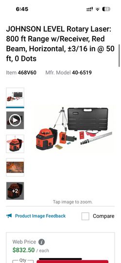 JOHNSON LEVEL Rotary Laser: 800 ft Range w/Receiver, Red Beam, Horizontal, ±3/16 in @ 50 ft, 0 Dots $500Tucson, AZ