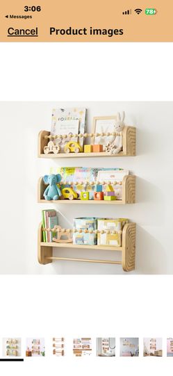SAG's store Floating Nursery Shelves - Set of 3 Natural Wood Wall-Mounted Bookshelves for Kids Room, Baby Room, Nursery Decor - 15.7" Wide, Solid Wood$25Fort Worth, TX