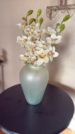 Green Translucent Glass Vase With Artificial Cymbidium Orchid$15El Paso, TX