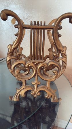 Heavy Cast Metal Lyre Harp Music Magazine Gold Tone Rack$15El Paso, TX