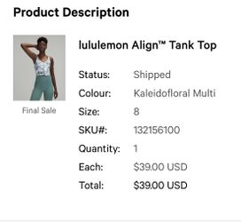 Lululemon Align Bra Tank Top Size 8$26Claremont, CA