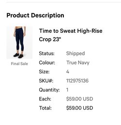 Lululemon Time To Sweat Leggings 23”$40Claremont, CA