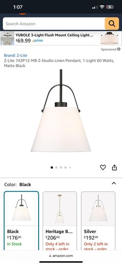 Z-Lite 743P12-MB Z-Studio Linen Pendant, 1-Light 60 Watts, Matte Black$50Sacramento, CA