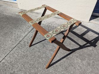 Vintage Scheibe Wooden Folding Luggage Suitcase Rack Stand with Tapestry Straps.$95Cape Coral, FL