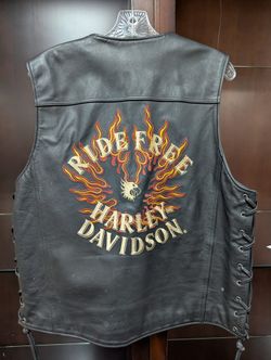 Mens Harley Davidson Leather Vest ( L) Large Blazing Flames.$125Cape Coral, FL