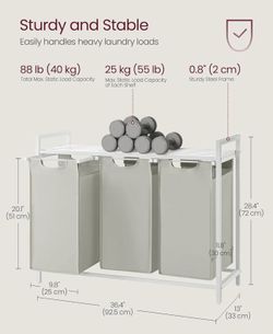 VASAGLE Laundry Hamper Basket Sorter w/ 3 Pull-Out Metal Frame - White$40El Monte, CA