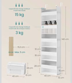 SONGMICS Hanging Shelf Organiser Over The Door Closet Cloth Net Transparent Nylon Foldable Metal Hooks Side Pockets - Cloud White$18El Monte, CA