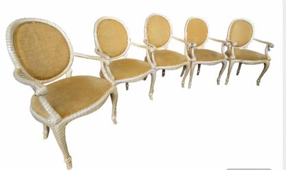 Vintage set of pearl painted velvet yellow balloon chairs traditional /French inspired 4-6. All structurally sound and from a clean smoke free home. $275Altamonte Springs, FL