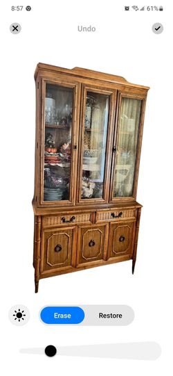 Faux bamboo credenza sideboard buffet China cabinet hutch by Broyhill. Sold as is in white and blue paint finish. Bottom piece measures Dimensio$475Altamonte Springs, FL