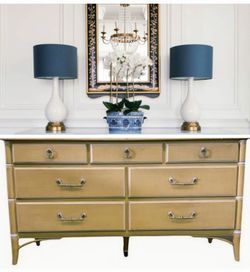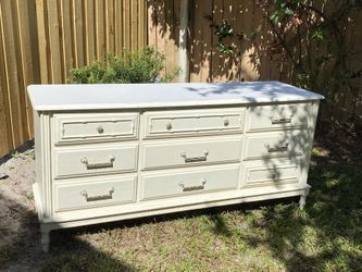 Vintage faux bamboo solid wood credenza 7 drawer dresser by Thomasville 56 long 18 deep 30 tall Real wood. Currently previously painted an off white $295Altamonte Springs, FL