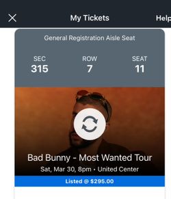 Bad Bunny Tickets 3/30$200Romeoville, IL