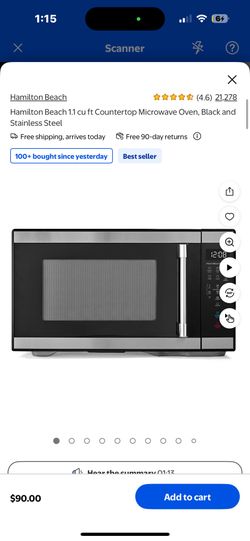 Hamilton Beach 1.1 cu ft Countertop Microwave Oven, Black and Stainless Steel$70Los Angeles, CA