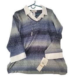 Alfred Dunner Womens Blue White Gray V-Neck Sweater size 3X NEW$40Round Rock, TX