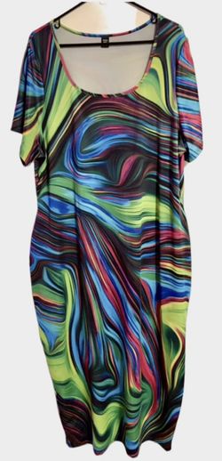 Plus Size Womens Colorful Abstract swoop neck maxi Dress with pockets sz 3X pre$25Round Rock, TX