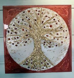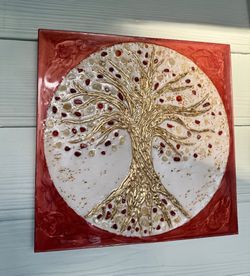 Handmade Citrine and Red Agate Tree Art – 20x20 Wood Panel$120Miami, FL