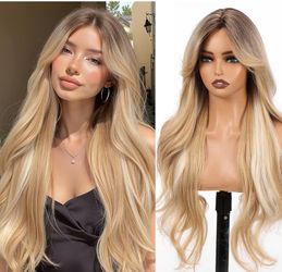 Blonde Wig with Dark Roots & Curtain Bangs Long Curly Synthetic Hair 28$15Modesto, CA