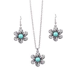 Turquoise diamond retro Chinese style hollow flower earrings necklace earrings jewelry set for women$178Westview, FL