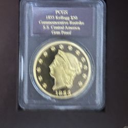 1855 Kellogg $50 Gold Restrike PCGS Gem Proof - S.S. Central America Gold + Nugget (2.41 oz AGW)$1Houston, TX