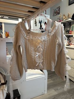 Kawaii Cold Shoulder Lace Trim Bow Decor Cable Knit Sweater (size Medium)$10Turlock, CA