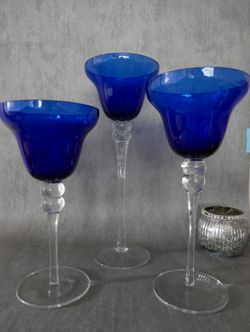 3pc Set Long Stem Blue Glass Candle Holders Home Decor Wedding Event Party$15Staten Island, NY