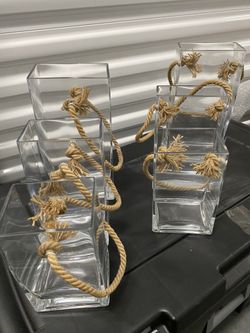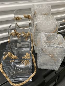 Set of 6 Rectangle Shape Glass Vase with Hemp Strap for Home Decor Garden Event$60Roselle Park, NJ