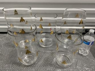 5pc Set Large Clear Glass Flower Vases with Gold Fly Prints Home Decor Event Wedding$50Roselle Park, NJ