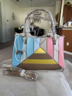 Geometric 3D Symmetrical Pink Hello Blue Handbag$150Ruskin, FL