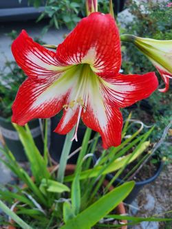 Red And White Amaryllis Plant Five Gallon Pot $10San Diego, CA
