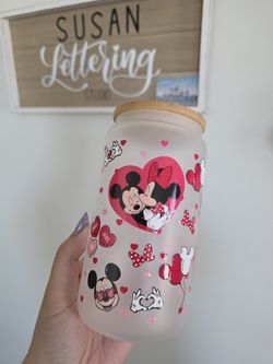 Mickey And Minnie Hearts Love Balloons Valentine's Day Gift 16oz Glass Cup $10Ontario, CA