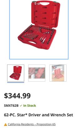 Mac tools smxt62b torx star driver and wrench set 62 piece with case$180Bakersfield, CA