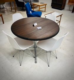 Completely Refinished Round Walnut Table with Metal Frame/Legs + Four Eames Inspired Chairs$480Phoenix, AZ