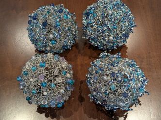 Set of 4 blue and white beaded Christmas ornament ball 4”$25Westchester, CA