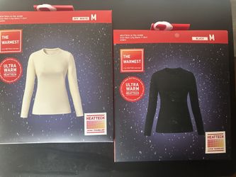 2-pk Uniqlo HEATTECH Ultra Warm Crew Neck Long Sleeve - Black/Off White - Women’s Medium $45Riverside, CA