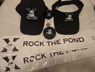 A Mighty Decade (Anaheim Ducks NHL) Hat Visor, Puck, Keychain, Thunder Sticks $25Corona, CA