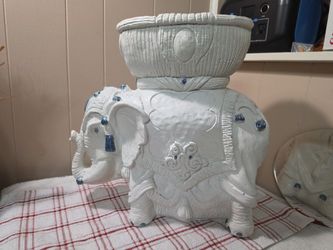 Vintage Boho Glazed Ceramic Elephant Planter