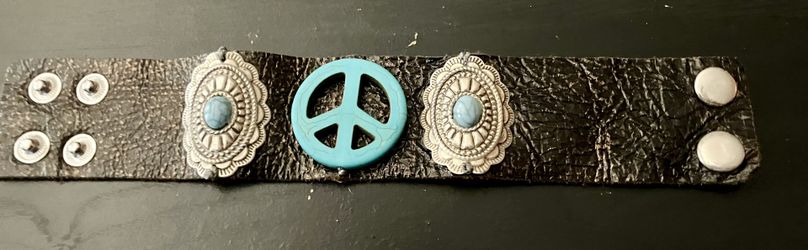 Leather Peace Sign Cuff Bracelet with Turquoise Accents$15Cornelius, NC