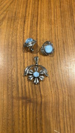 Sterling Silver And Cats Eye Stone Earring And Necklace Pendant Set$80Ventura, CA