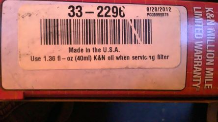 K And N High Flow Air Filter Hyundai And Kia$50Los Angeles, CA