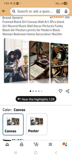 Framed Black Girl Canvas Wall Art 3Pcs black Girl Record Music Wall Decor Pictures Funky Black Girl Posters prints for Modern Black Woman Bedroom Home$25Alhambra, CA