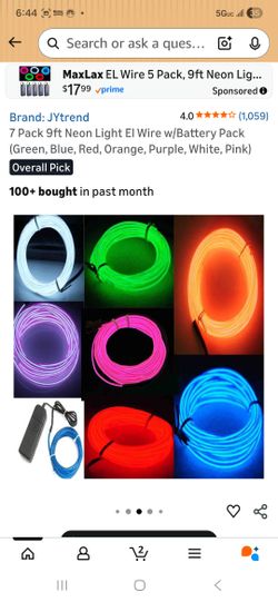 7 Pack 9ft Neon Light El Wire w/Battery Pack (Green, Blue, Red, Orange, Purple, White, Pink)$15Rosemead, CA
